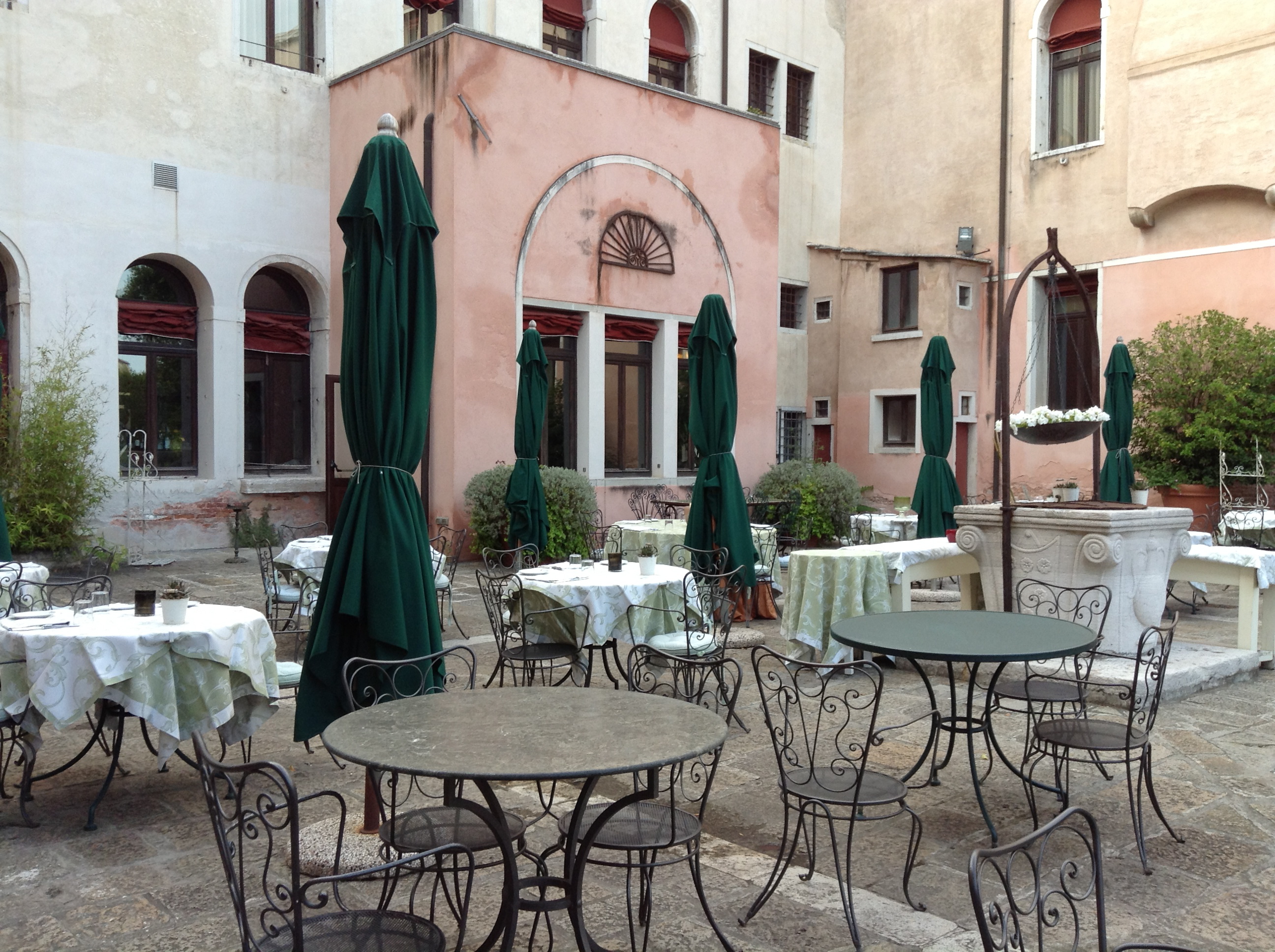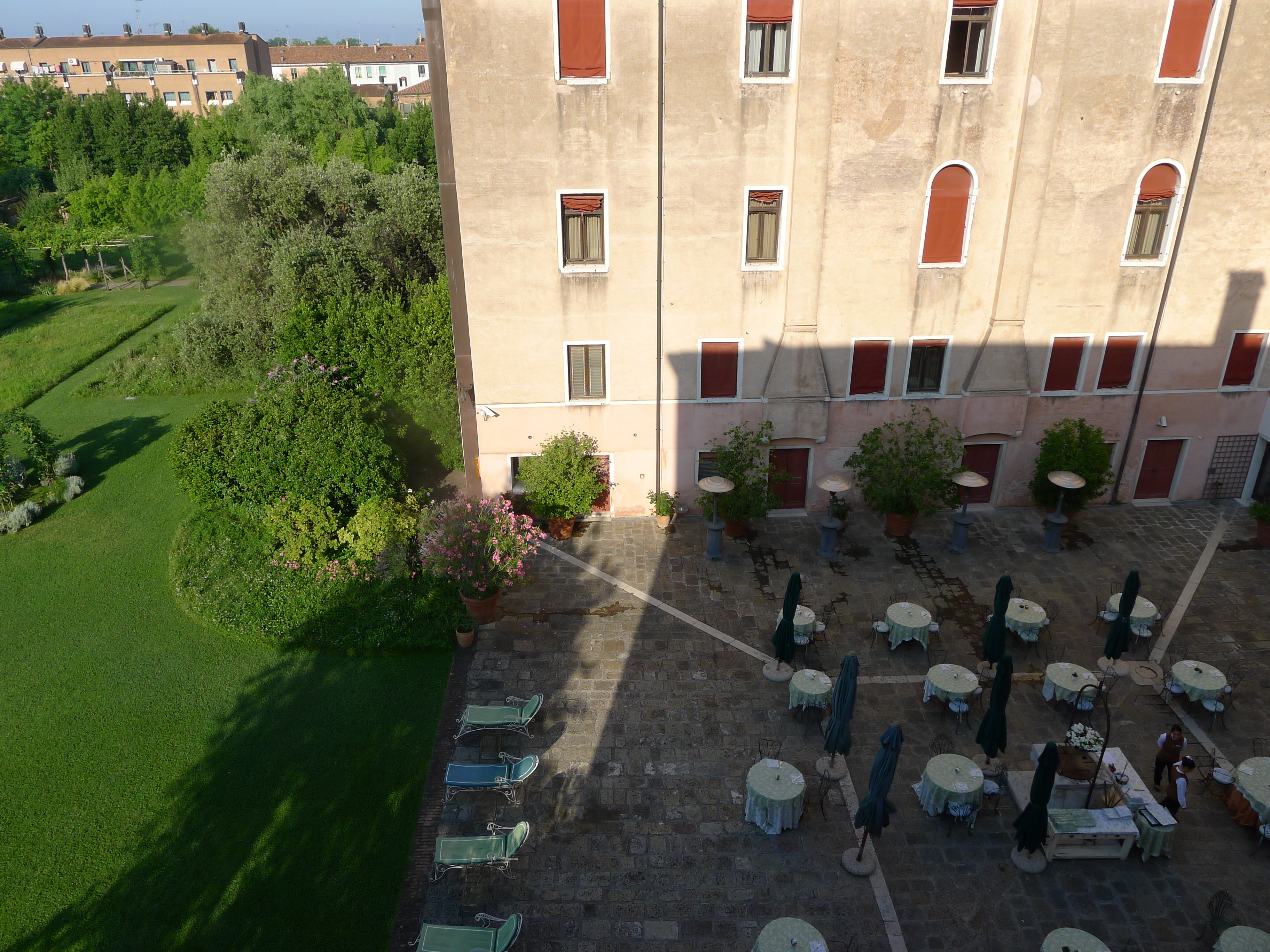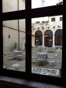 The Palladio hotel and especially the rooms are already slightly worn out, but the inner garden is so fantastic that it makes you discard the shabbiness – some might think it as shabby chic, I am not quite sure which would be my definition… However, when you wake up in the morning, open your window shutters and see the garden with the breakfast tables set ready, you just feel like running downstairs to have your cappuccino while staring at the sun gazed garden.