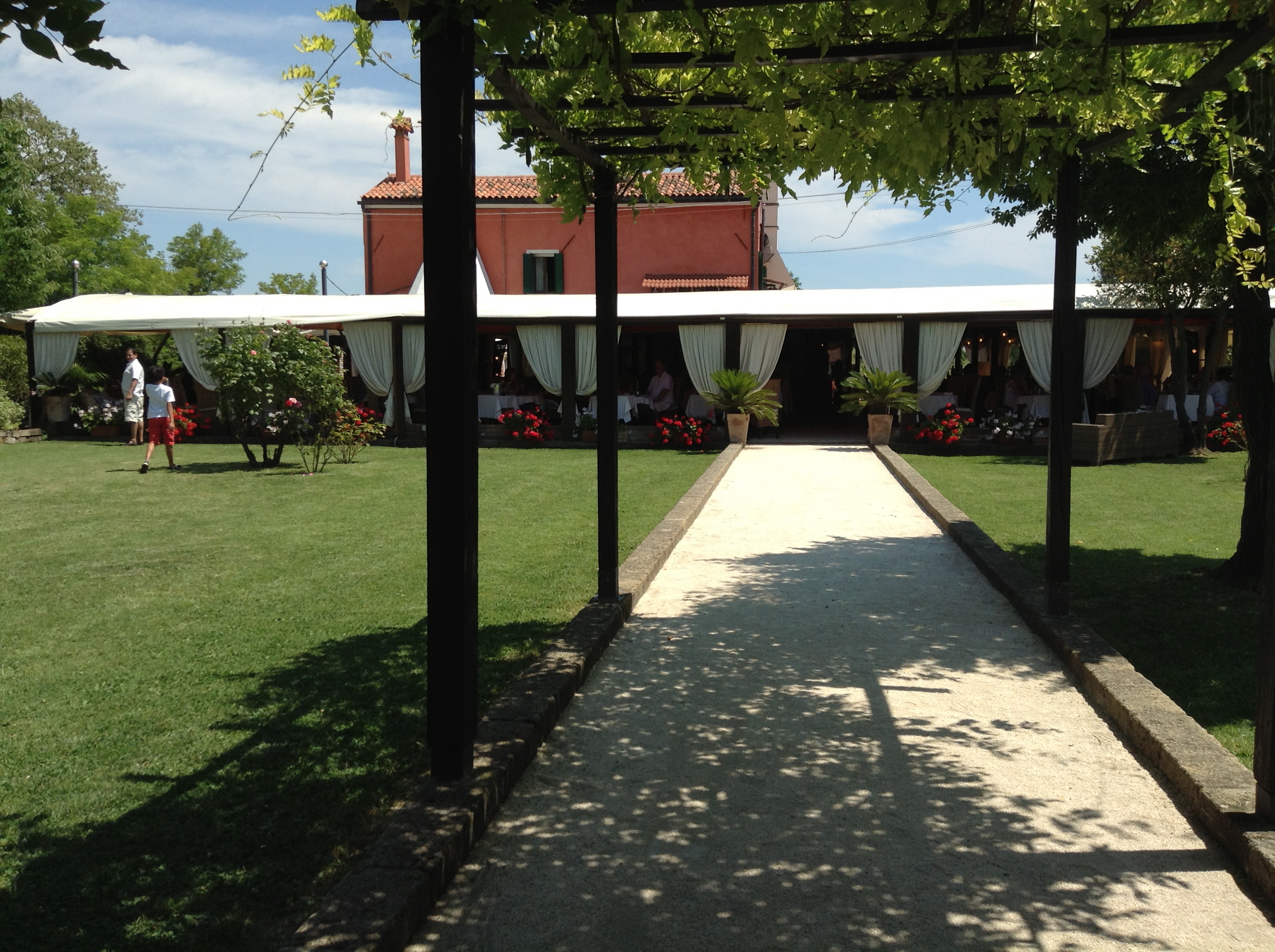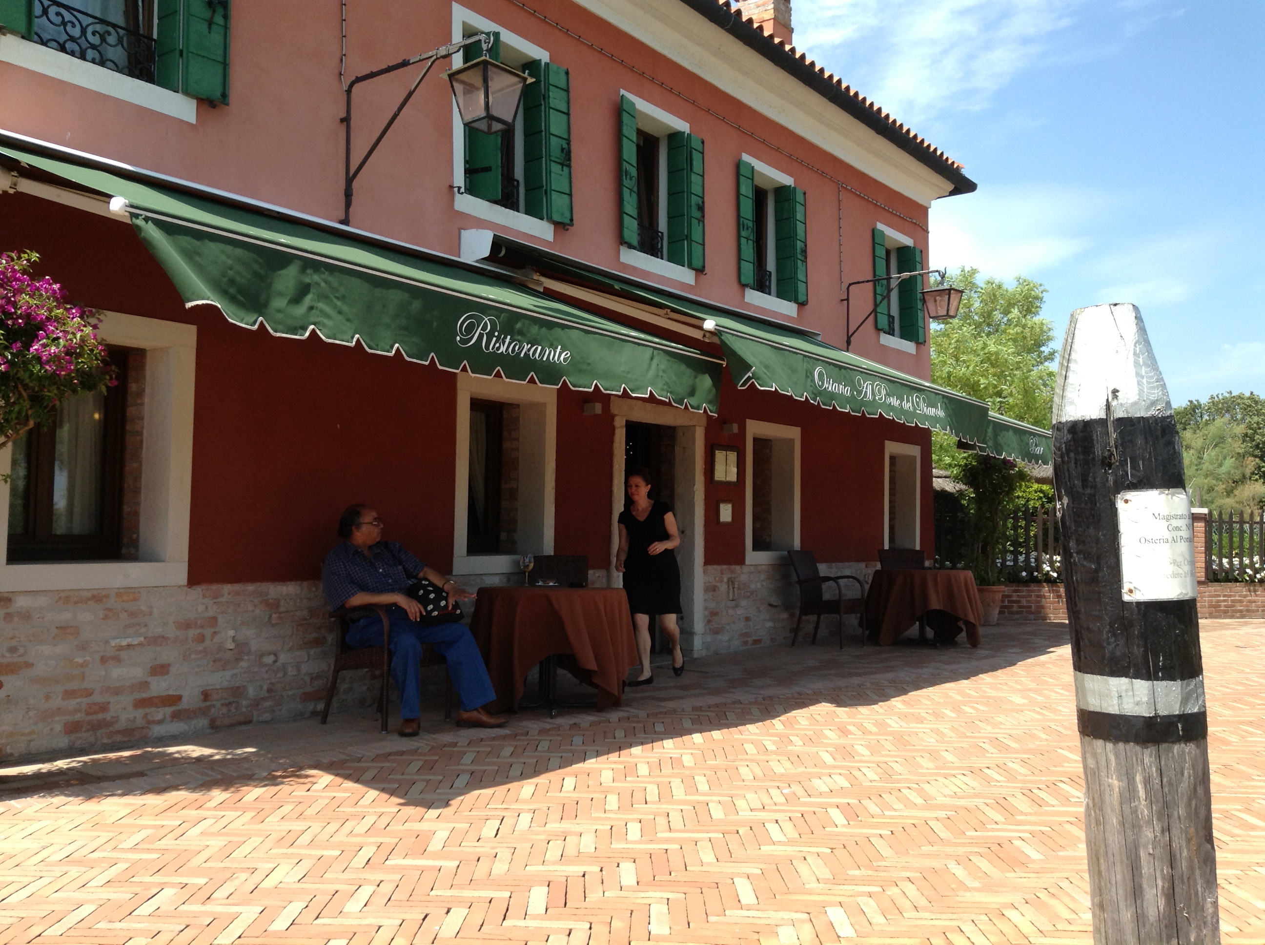 We had a very nice lunch on the Torcello Island in a restaurant called Osteria Al Ponte Del Diavolo . The restaurant was recommended to us by our water taxi driver and apparently was popular among the locals. The building does not seem that interesting from outside, but has a relaxing garden behind it. A good place for the children to play in for a moment while parents are having a looooong lunch. About food, service and wine selection I hate to repeat myself, but it was all very balanced and above the level I had expected.