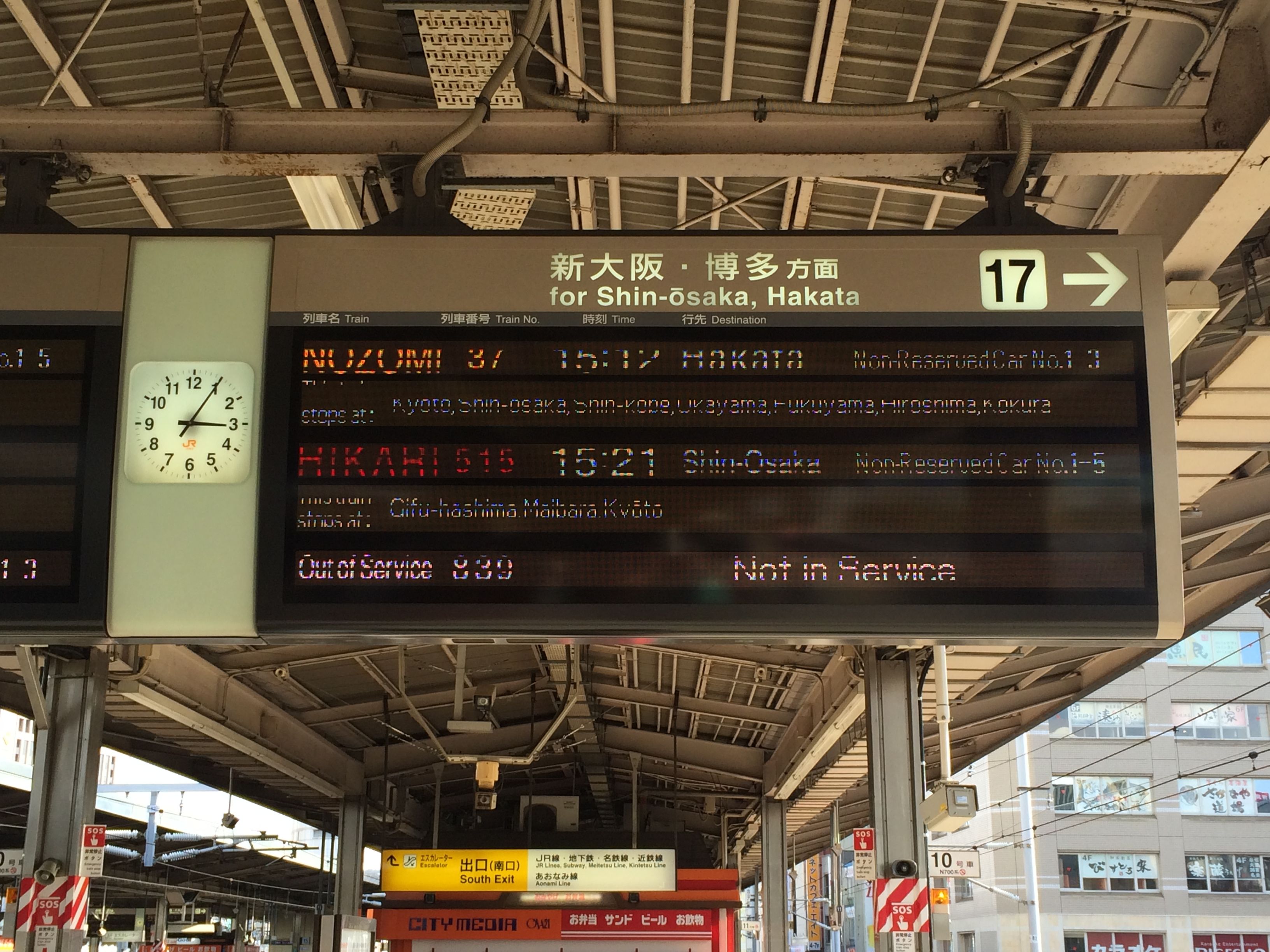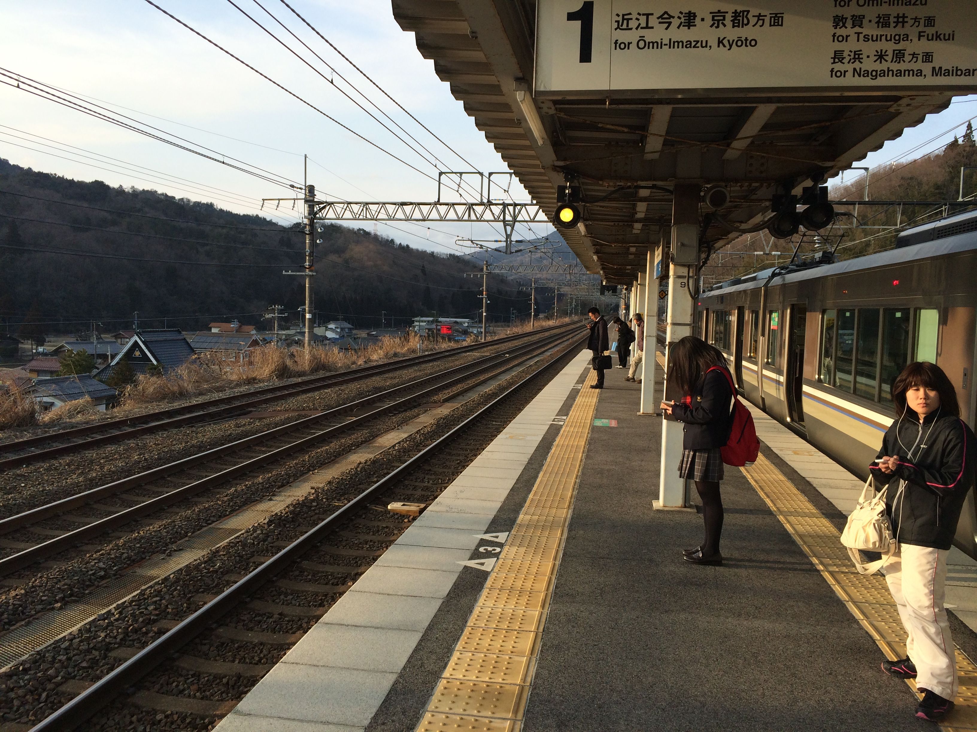 We took a local train JR Kosei Line from JR Oumi-Imazu station to Osaka instead of the Shinkansen, in order to see more of the beauty of Lake Biwa. When taken to the station, I was extremely happy to receive the Ryokan Collection book as a gift – the book that I had been reading in the room and that according to the reception could only be ordered trough web. This must have also been the first time the hotel staff has assisted us all the way to our train cabin of a local train.