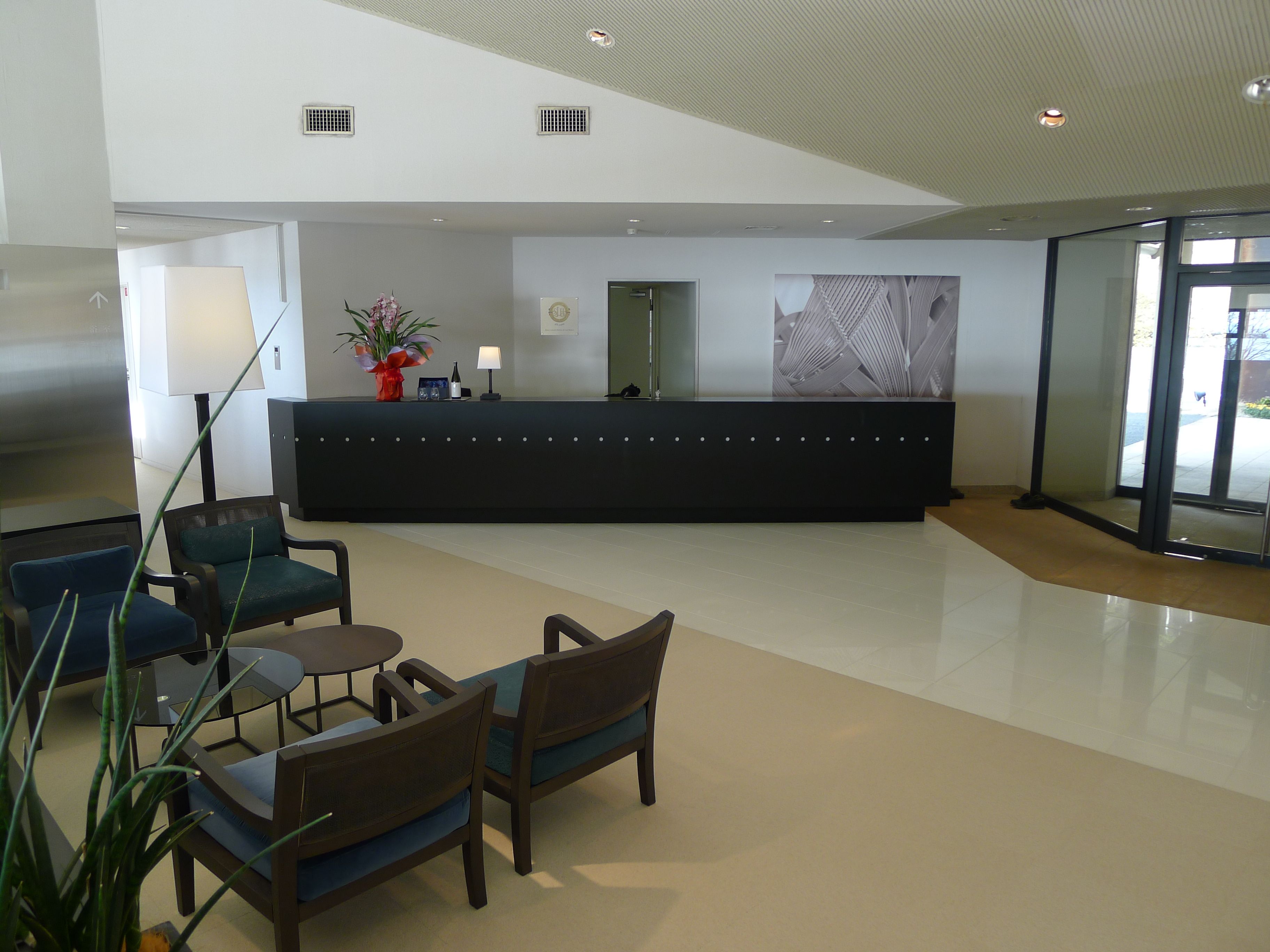 In principle a Ryokan has no reception even if this one had one; instead the guests are directly taken to their accommodation. Hotel du Lac has some hotel rooms in the main building and in addition some cottages.