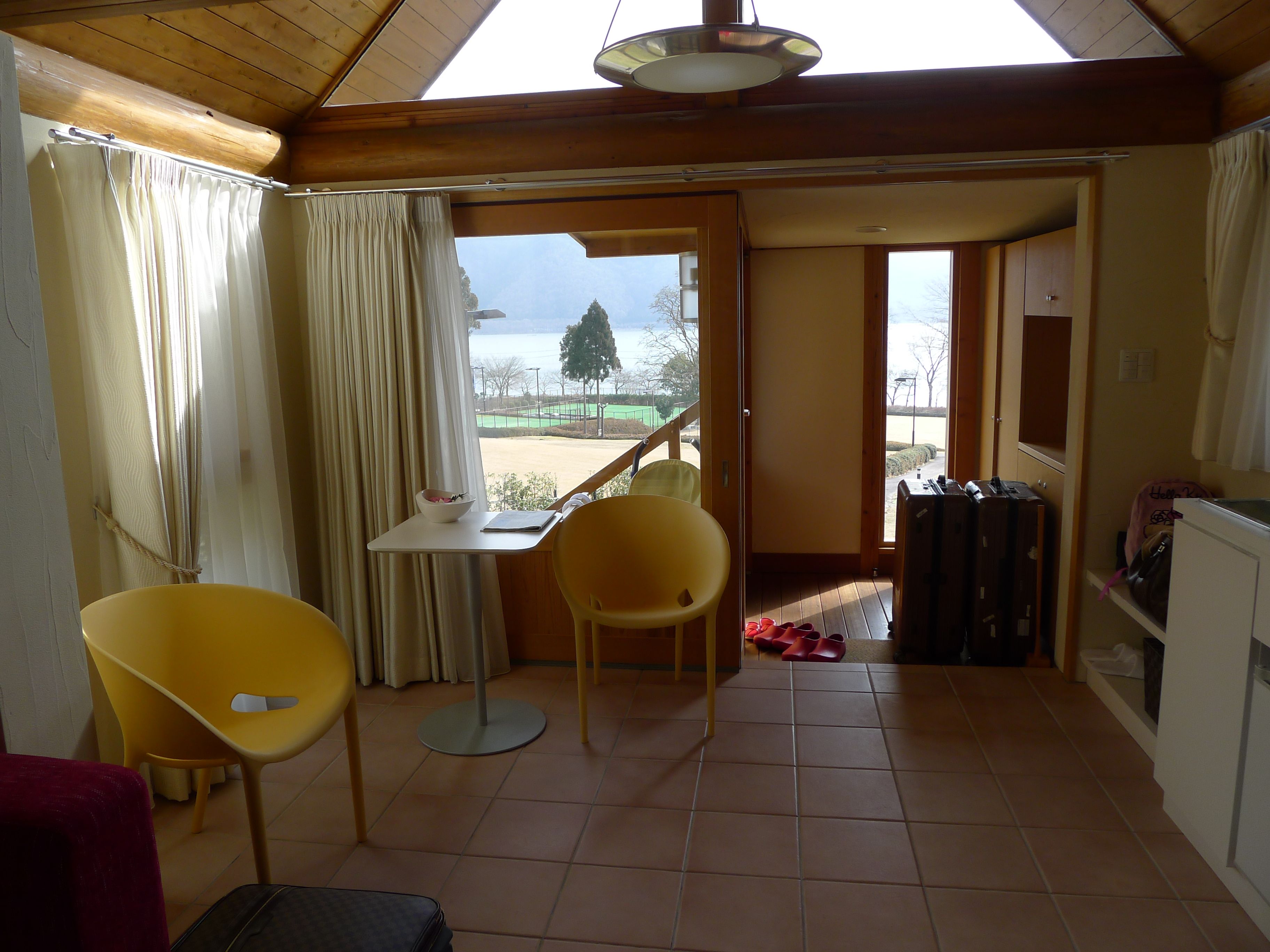 We were taken to one of the cottages, named Como. I had been hoping for an Asian style cottage to be honest, but did not want to confuse things further. I did not quite understand the beauty of our residence in the first place as I felt having ended up to a Finnish summerhouse on the shores of Lake Biwa, but I did find the beauty of it all later on and for sure left a piece of my heart there…