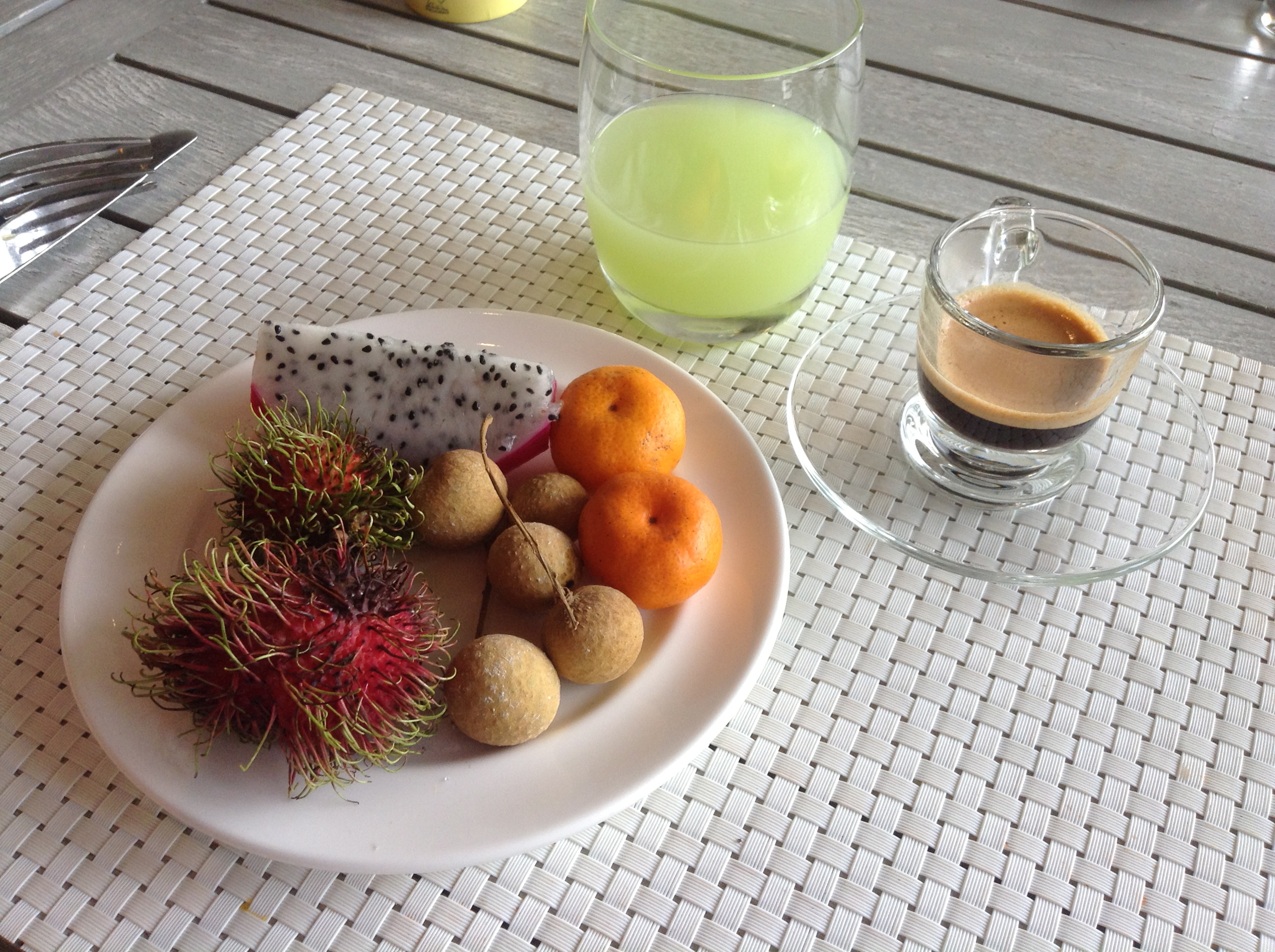 The sumptuous breakfast buffet was served in the Elements restaurant next to the main pool. The offering was superfluous, but as I do love breakfasts I truly enjoyed it. Just thinking of all the fresh fruit makes me feel like going back…